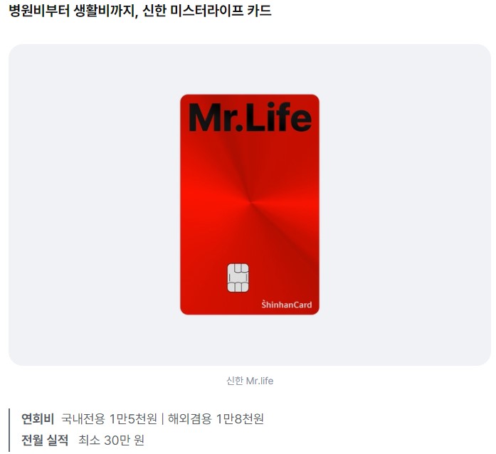 📍 [병원에서 생활비까지, 신한 미스터 라이프 카드]