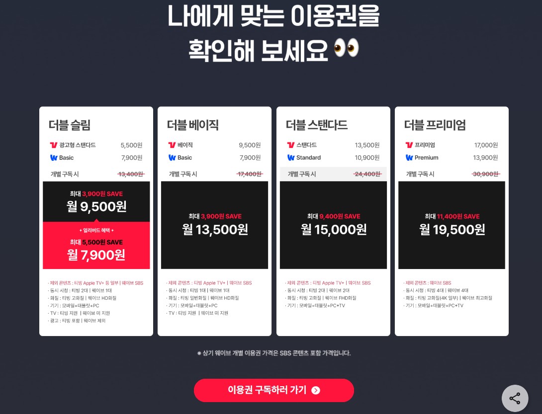 - 결제는 티빙에서만 가능, 웨이브 앱에선 구매 불가